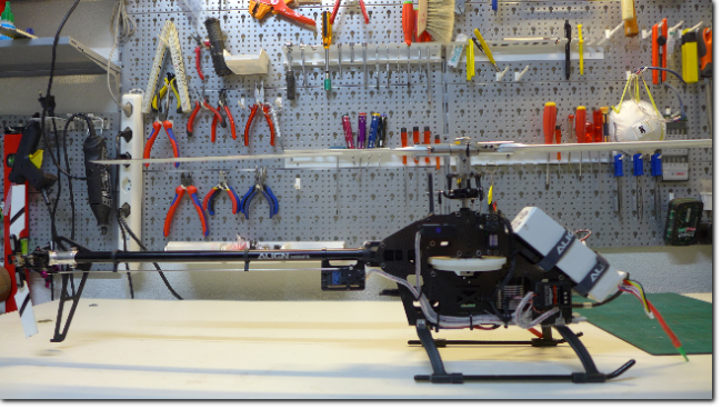 Umbau auf Flybarless mit Microbeast, Einstellen des Sender und Einfliegen, Reparatur des Rumpfes und nochmaliges Einfliegen mit Rumpf.