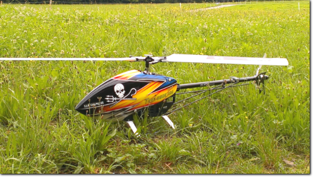 Heckservo war falsch montiert und Servohorn inkl. Kugelkopf fehlte. Heckanlenkung ist mit Loctite verklebt gewesen und nicht leichtgängig gelaufen.