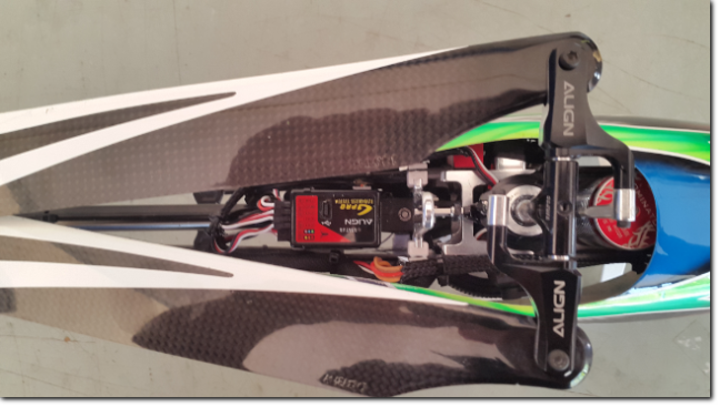 - Futaba T12FG und Align GPro eingestellt, Check des Heli inkl. Einfliegen.