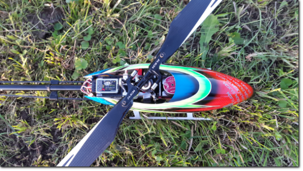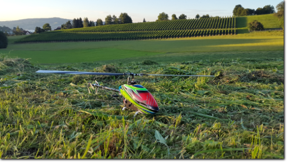- Der Sender T14SG wurde richtig eingestellt, das 3GX programmiert und der Heli eingeflogen.