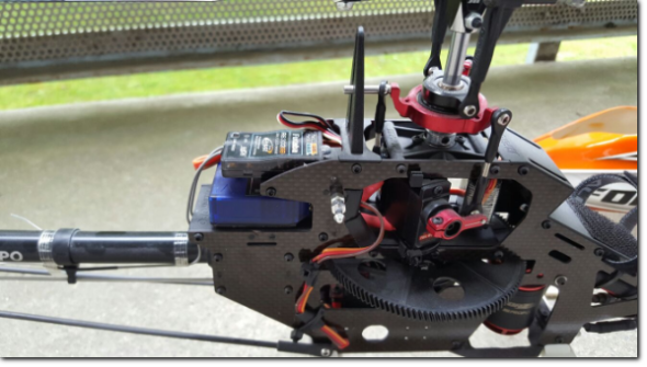 Der Sender Futaba T14SG und Vstabi Express wurden eingestellt und der Heli eingeflogen.