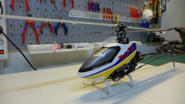 Die Grundmontage war zwar gemacht und es ging noch um die Endmontage wie Programmieren der Steuerung Futaba T8FG inkl. Firmware Update von 1.1 auf 5.0, des Kreisel, Einstellen der Servos, TS, Blattspur etc.