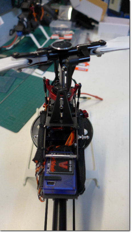 Komplettmontage des Tophelis inkl. DX9 programmieren und Firmware Upgrade. Weiter wurde das Mini Vstabi programmiert, der Heli mechanisch eingestellt und eingeflogen. Liegt super ruhig in der Luft!