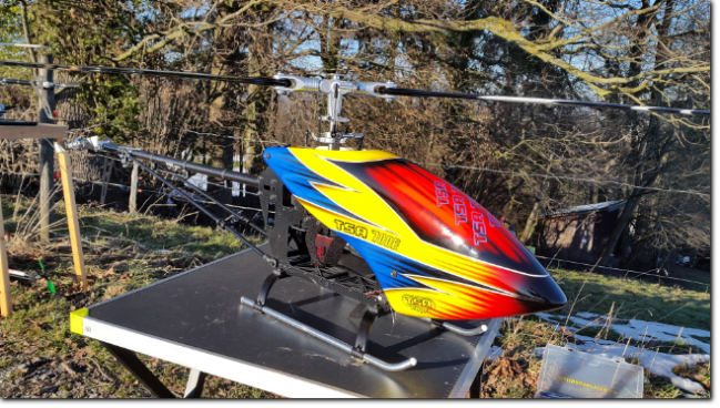 Januar 2015ArbeitenKomplettmontage des TSA 700 Infusion Platinum mit Scorpion 4525 Ultimate, YGE 200 HV, Savox HV Servos und Vstabi Silverline Pro