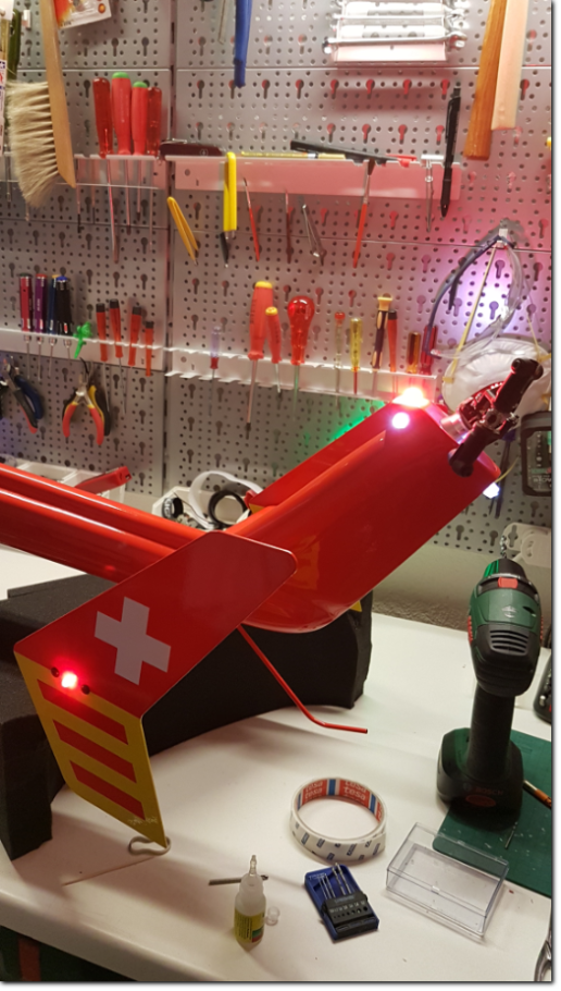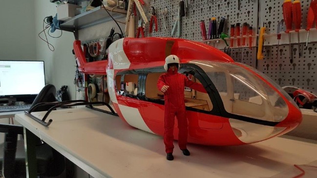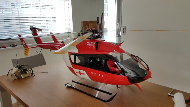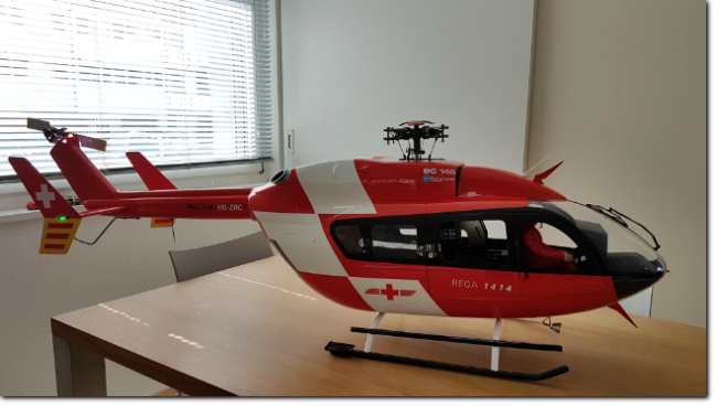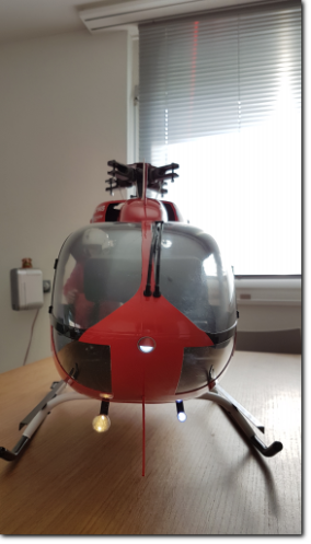 Mitte Juli bis Ende September 2017ArbeitenBau eines Standmodells der EC-145 Rega mit Beleuchtung (9 LEDs) und Cockpit.