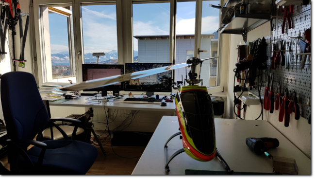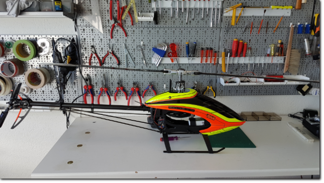Januar 2018ArbeitenKomplettmontage des neuen Mikado Logo 550 , Programmierung des Futaba 14SG Senders und Vstabi Neo inkl. Einfliegen und Übergabe.